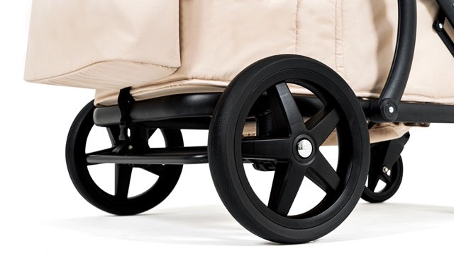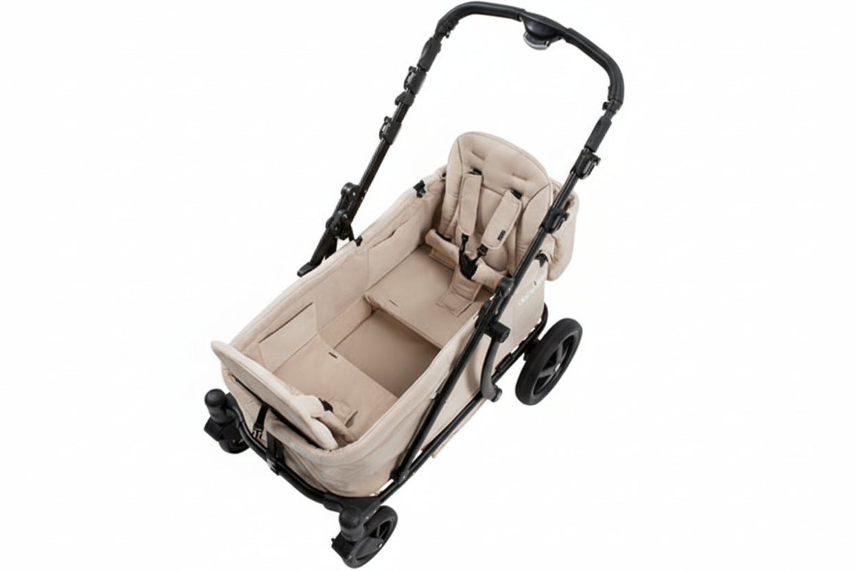 Dankzij de brede all-terrain wielen rijdt de Pronto soepel over zand, gras, bospaden en stadse stoepen. Altijd stabiel, altijd comfortabel waar jullie avontuur ook naartoe gaat.