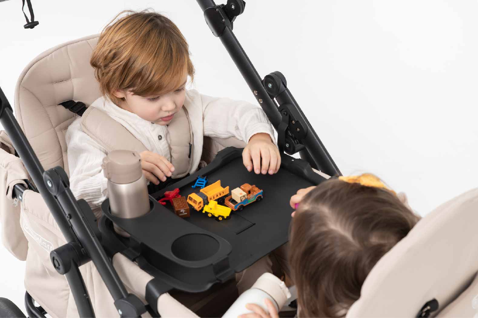 Verwandeln Sie Ihren Pronto Kinderwagen mit dem Pronto Kindertablett in einen gemütlichen und praktischen Platz. Ideal für Snacks, Spiele, Getränke oder eine kurze Pause unterwegs. Mehr Komfort, mehr Spaß!