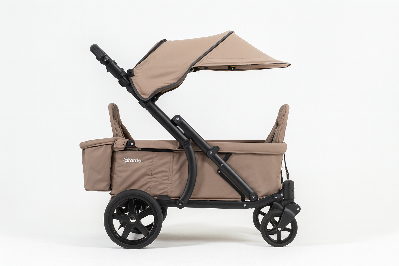 Der Pronto Kinderwagen ist ein luxuriöser All-in-One-Kinderwagen und Handwagen, der mit Ihrer Familie mitwächst. Diese limitierte Edition in Mokka-Mousse mit eleganten Ton-in-Ton-Ledergriffen (und Schwarz) verleiht dem Kinderwagen einen Hauch von Luxus.