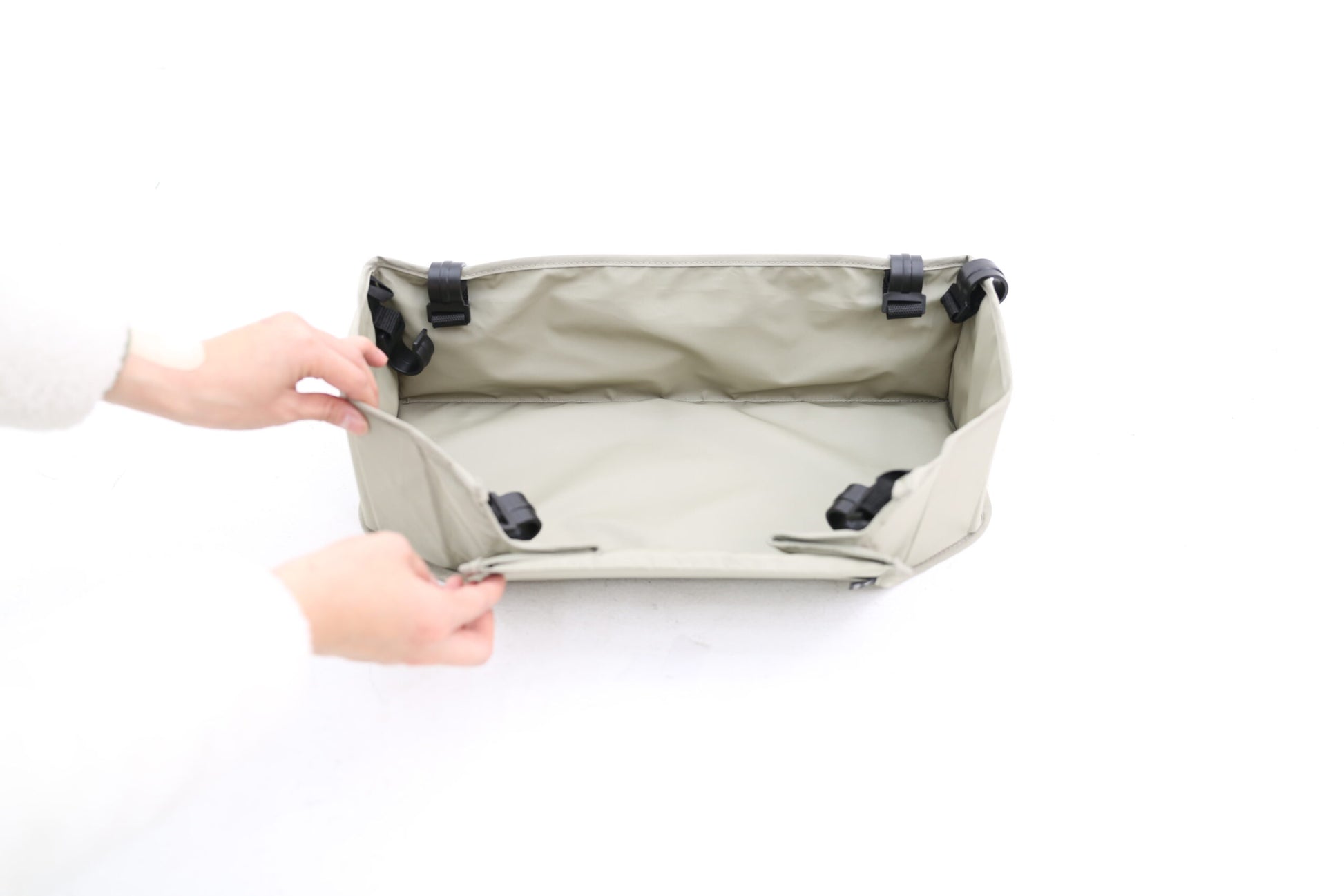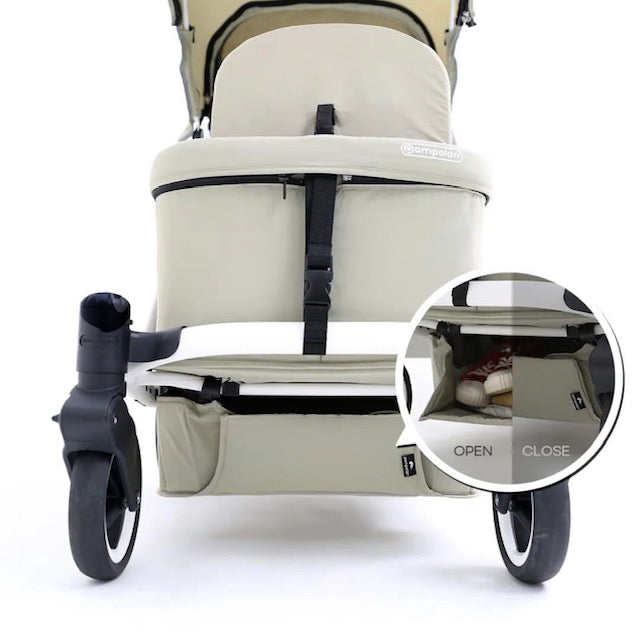 Erweitern Sie Ihren Pronto-Kinderwagen mit der Geheimaufbewahrungsbox . Ideal für Tagesausflüge, Besorgungen oder Ausflüge. Alles ordentlich verstaut, griffbereit und stilvoll integriert.